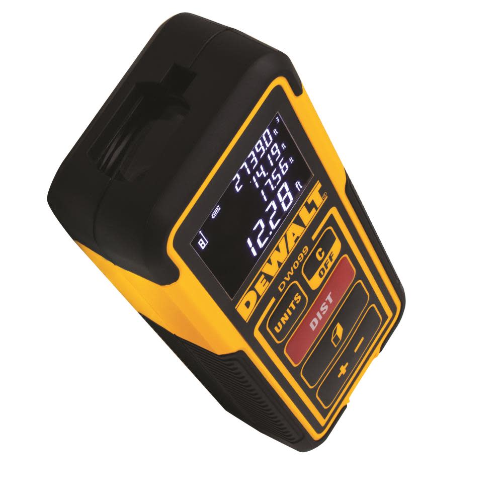 Description 100Ft Laser Distance Measurer The DEWALT DW099E 100 ft laser distance measurer features compact and lightweight design for easy storage, 4 panel digital readout for each measurement and total, TEK over-mold for secure grip and slip protection. California Proposition 65 Warning. Features Press one button for both hold measurements…