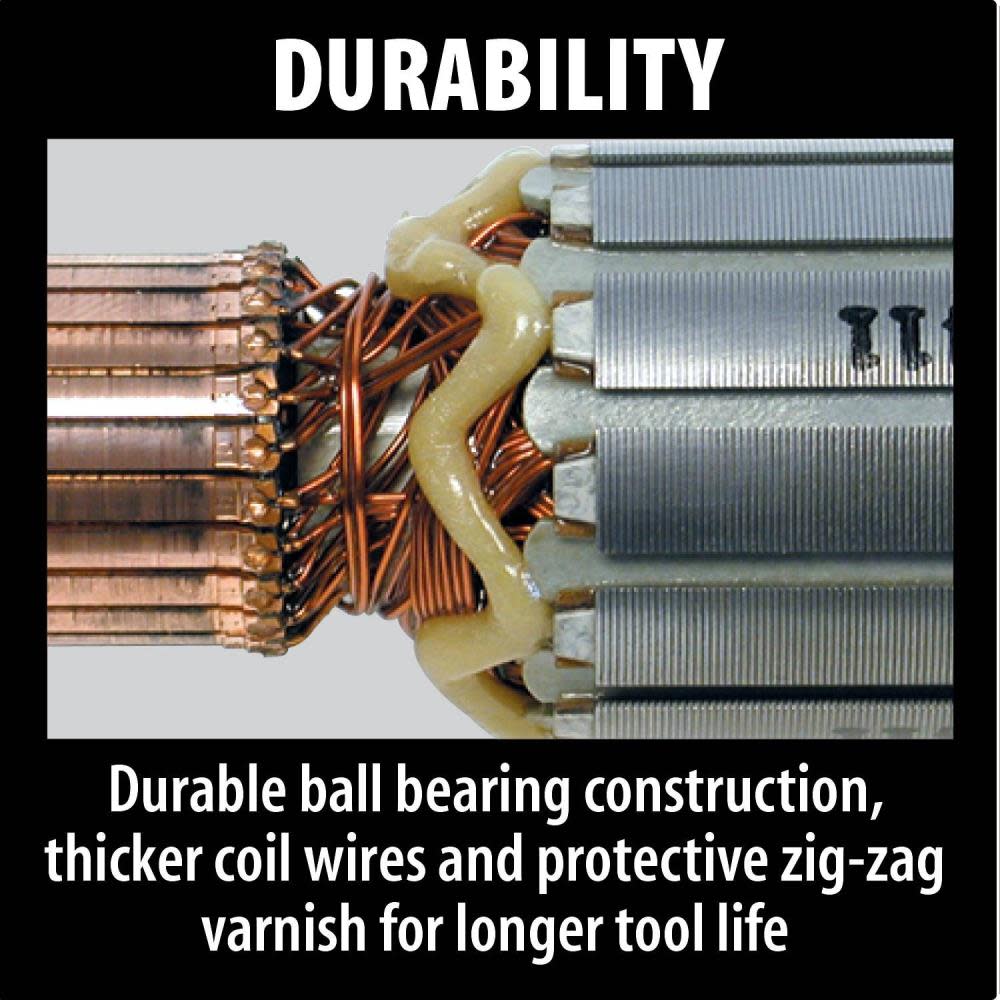 Powerful 15-Amp motor and lightweight housing give the grinder an impressive power-to-weight ratio