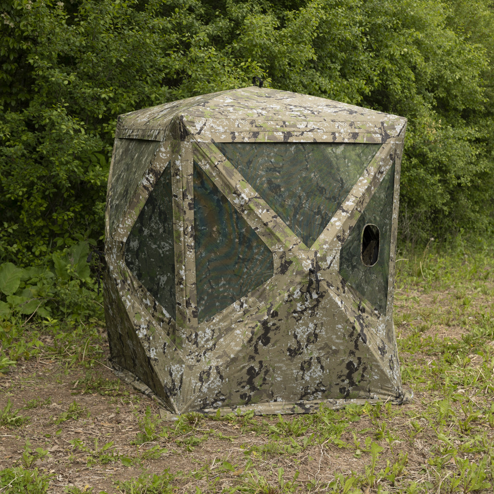 Most bow-hunters practice shooting while standing, yet they hunt out of small, cramped hunting blinds. The Big Mike™ Hub Blind from Barronett Blinds® is 80” tall, allowing most archers enough room to shoot while standing. The Big Mike™ fits in small places, but lets you stand tall, so you’ll have the opportunity to get up close and personal with that trophy animal for the thrill of a perfect hunt.