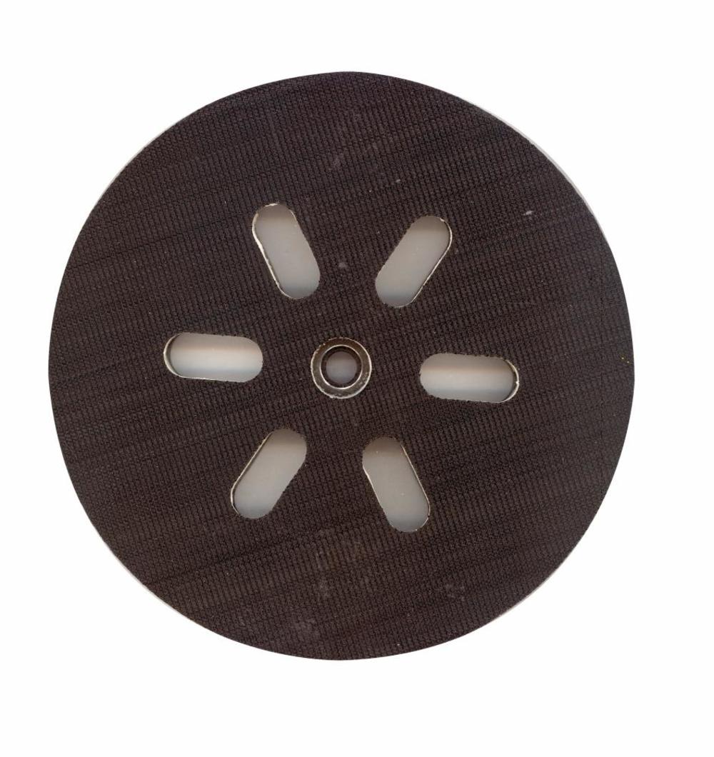 Six-inch diameter. Six-hole backing pad for Hook and Loop sanding discs. Flexible, general-purpose rubber pad allows flat or contour sanding without gouging. Fits Bosch sander models 1250DEVS, 3727DEVS and ROS65VC.