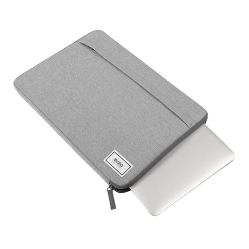 Features:Heathered grey material made from recycled PET bottles Fully padded 13.3 sleeve Full length front zippered pocket Black camo lining Back slip pocket