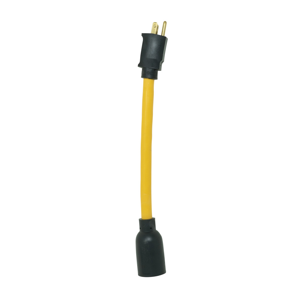 EASY-TO-USE GENERATOR POWER CORD ADAPTER: simply twist the 15a U-ground plug to lock into the 20a receptacle; lets you convert any plug quickly; the bright yellow jacket of the generator cord adapter increases visibility to minimize tripping incidents