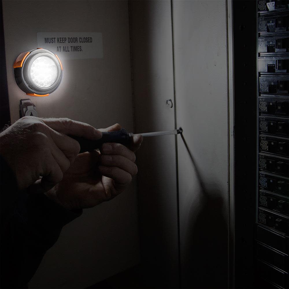 Tool Bag’s twist on/twist off removable LED light can be positioned to illuminate inside the bag or the workspace