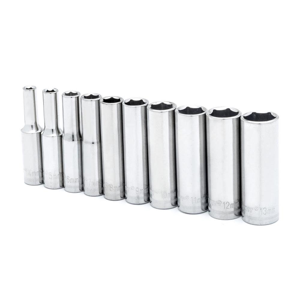 $3.78Description Socket Set, 10 Pc. 1/4 In. Drive 6 Point Deep Metric CRESCENT mechanics tools are made from Crestoloy® alloy steel which is specially formulated and heat-treated for high strength and superior resistance to abrasion and corrosion. Wrenches, ratchets, sockets, and drive tools all have a flawless chrome finish to…