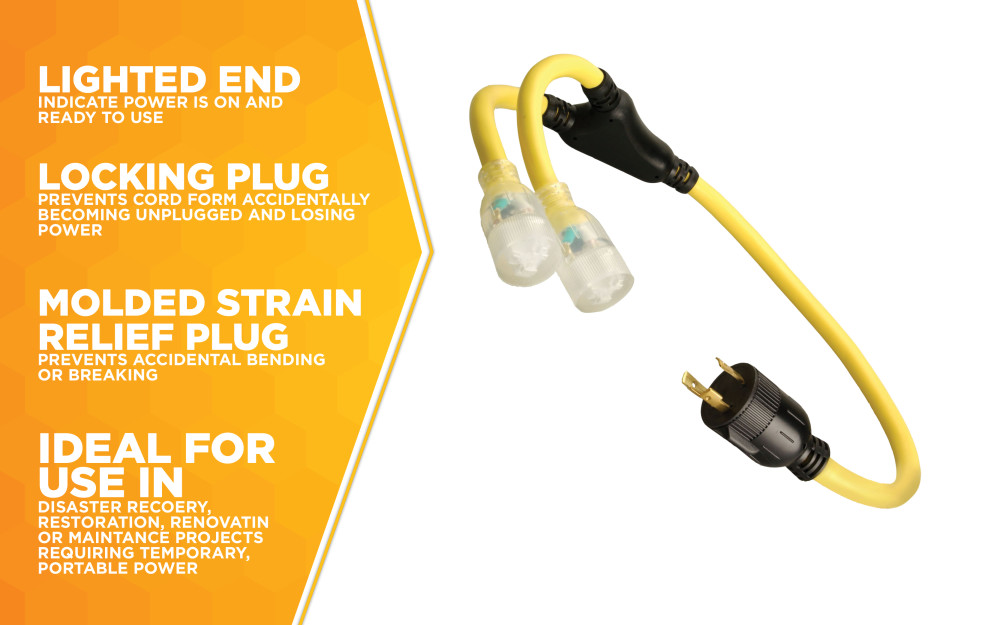 $7.98Description Southwire Generator Power Cord Y Adapter 10/3 STOW 3′ Southwire 019158802 3-Foot Generator Power Cord Adapter, 10/3 Splitter Y Adapter, L5-30P to (2) Lighted 5-20R. Features Hard-Usage and oil resistant cable jackets withstand harsh environments, Molded NEMA plugs provide ultimate dust and strain-relief. For use in disaster recovery, restoration,…