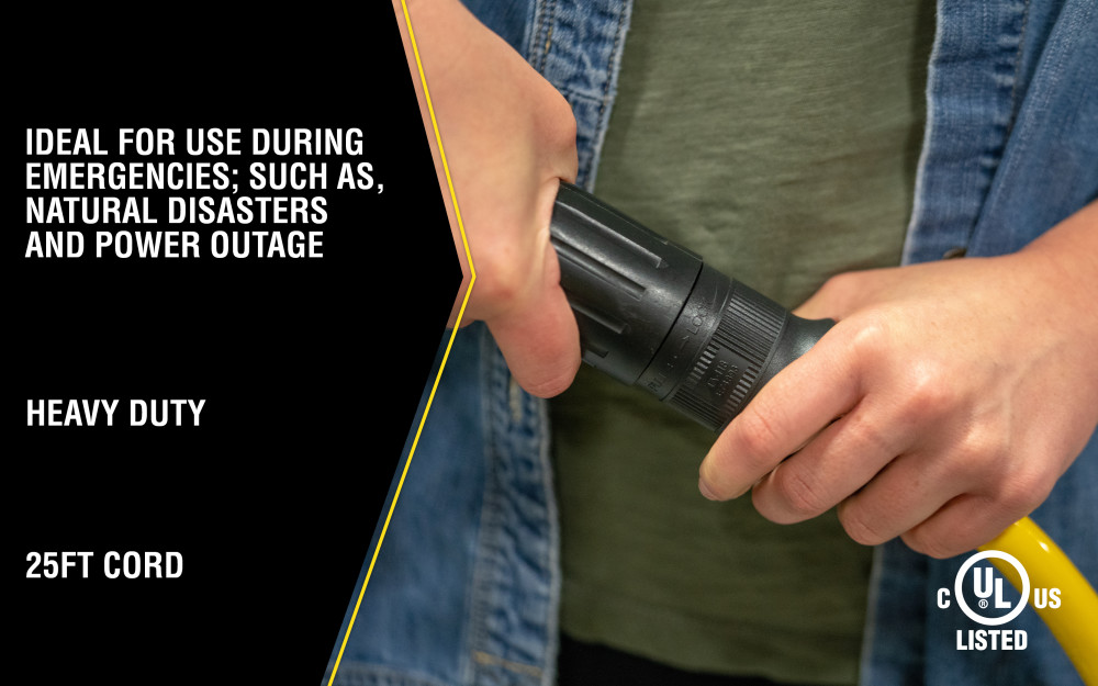 $39.00Description Southwire Generator Extension Cord, 25′, 10/4 Yellow Jacket 1493 10/4 Heavy-Duty STW 30-Amp/250-Volt Generator Power Cord, 25-Feet. Yellow jacket is 3 times as abrasion resistant as standard vinyl. Twist-to-lock plugs keeps cords connected. Powers 30-amp portable generators and power transfer switches. Suitable for commercial, industrial and residential applications. Meets…